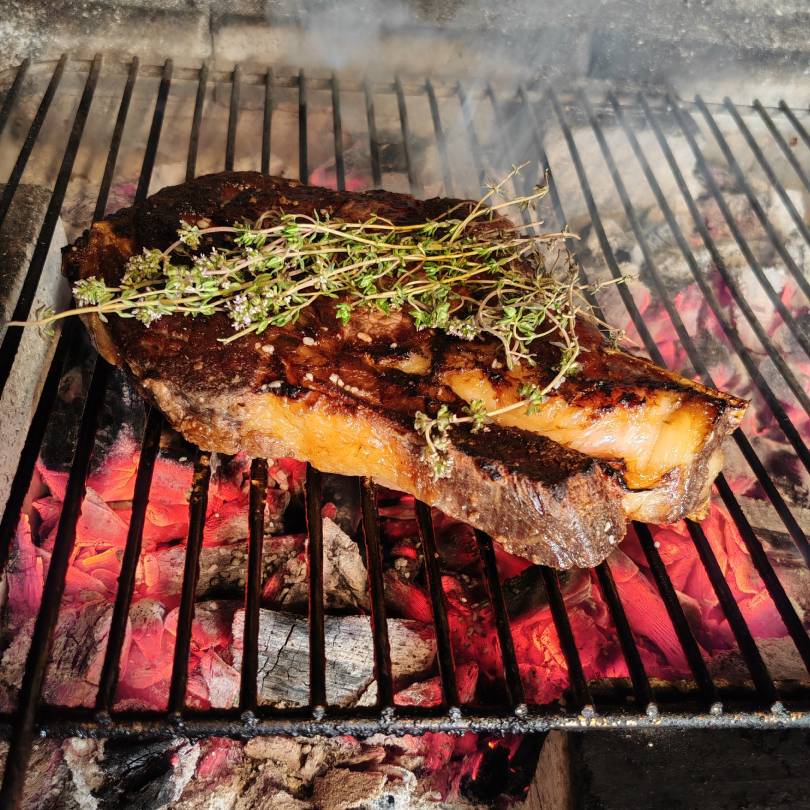 Côte de bœuf de Salers au feu et sa sauce, frites et salade (10€/100g)